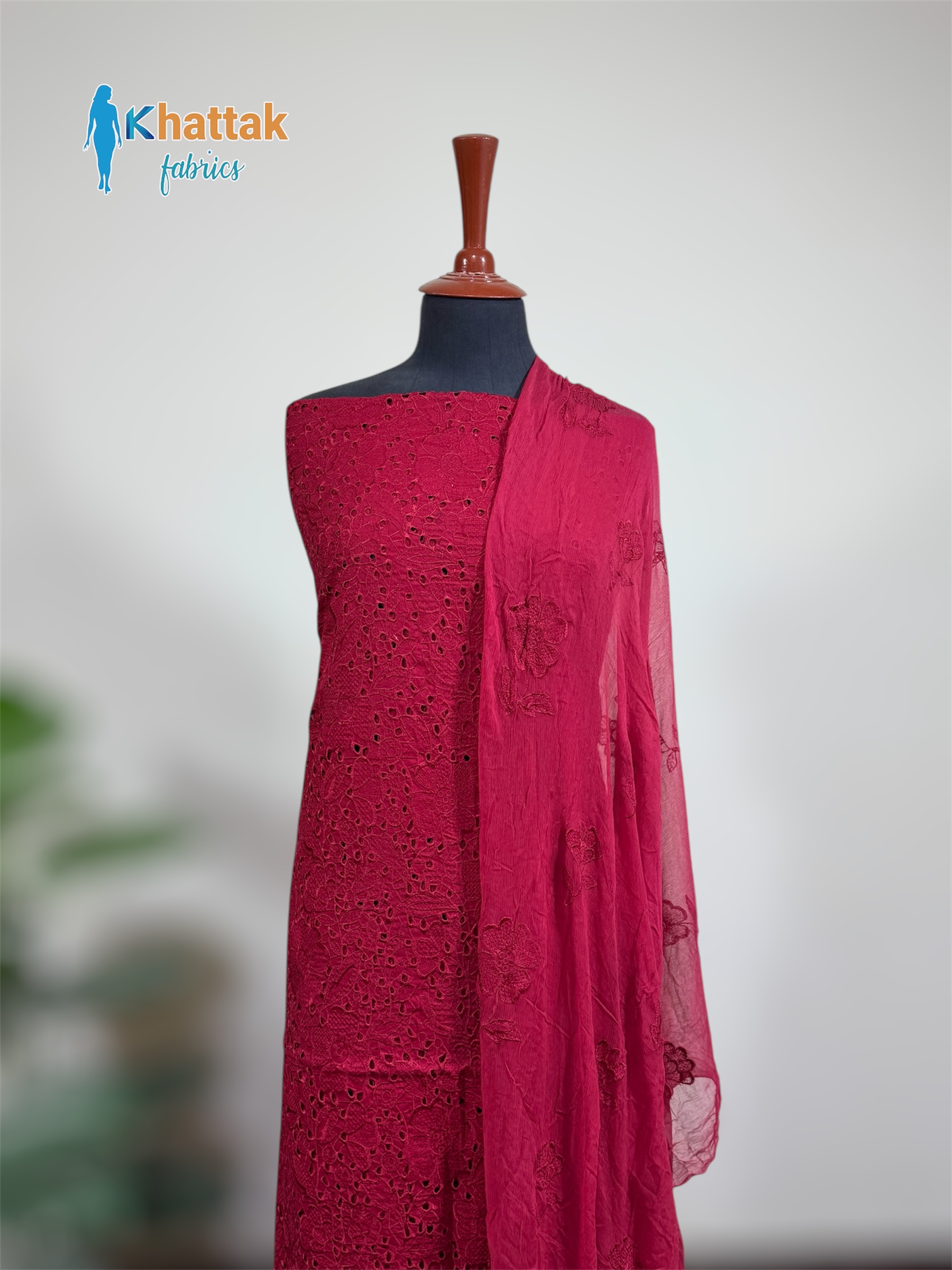 Khattak Fabrics Chikankari Embroidered – 3PC